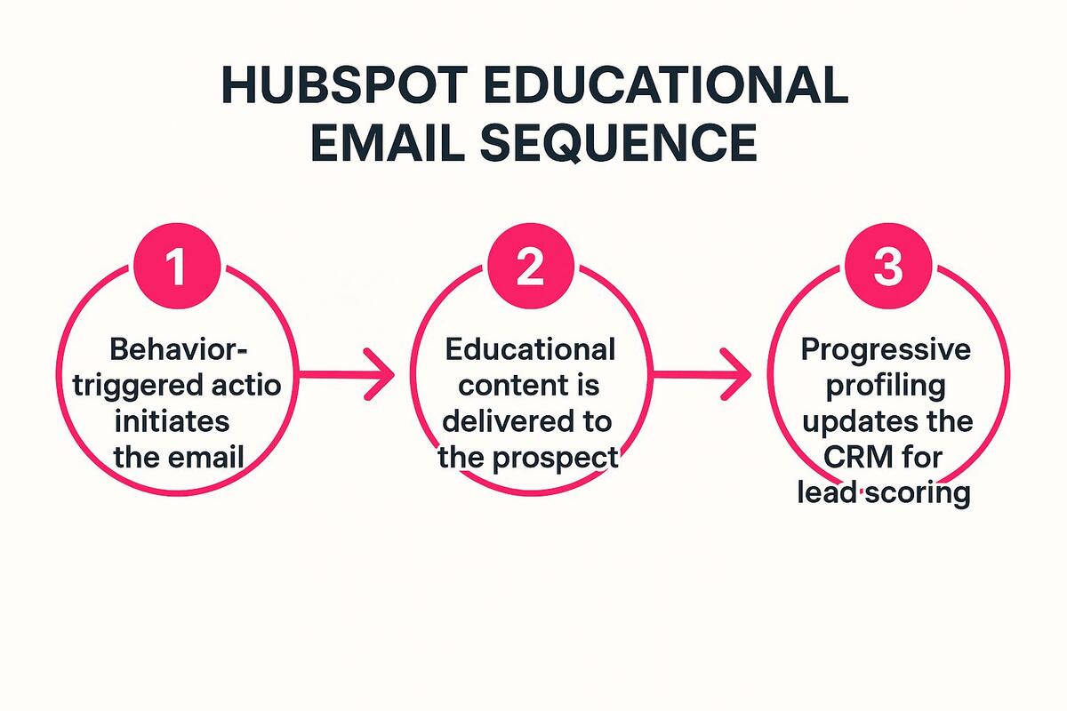 This process flow infographic illustrates how HubSpot uses behaviour to trigger and personalise its educational sequences.